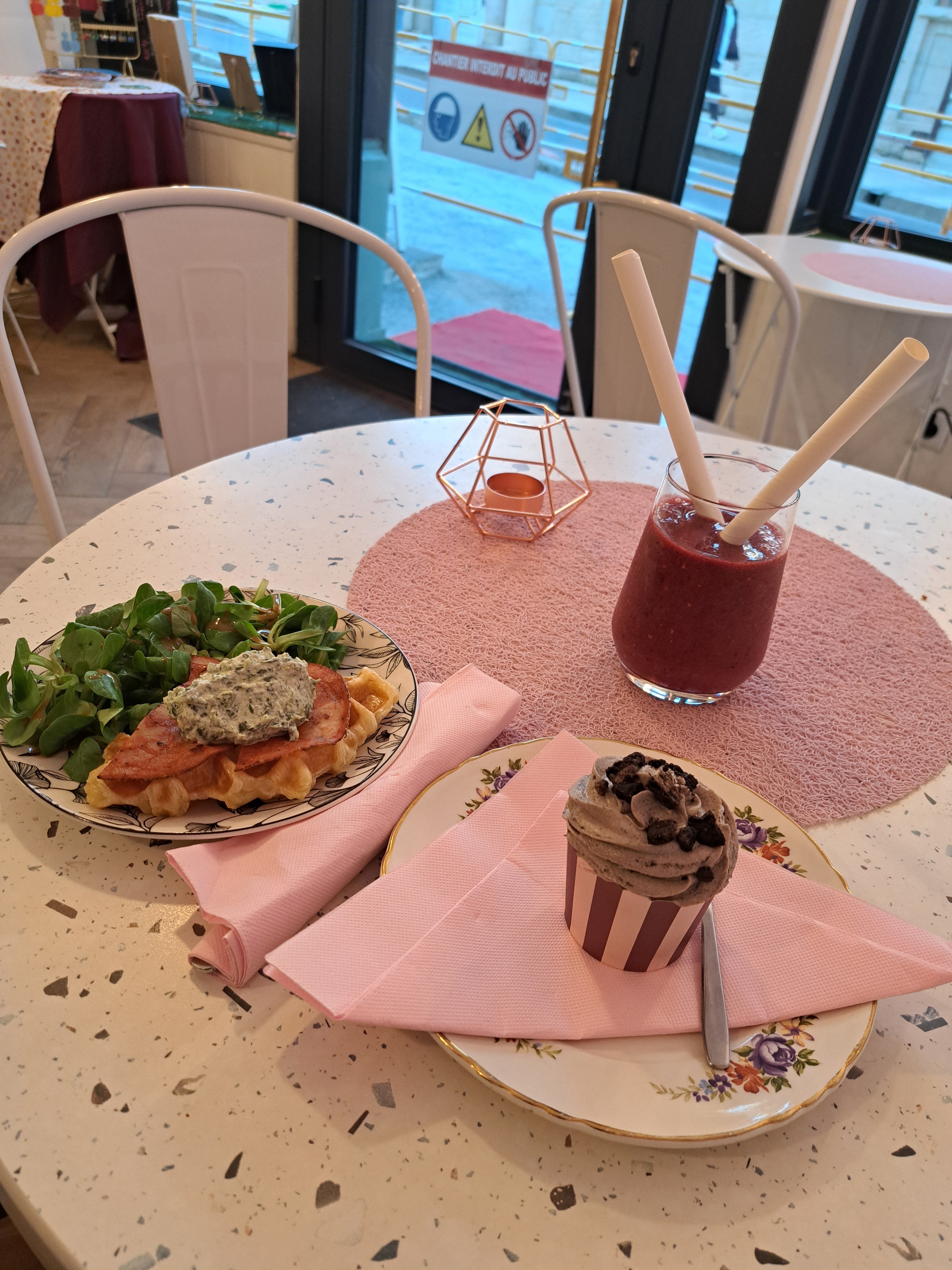 Posté le 04/10/2023 à 11:10"1ère fois que je me rends dans ce beau bar à cupcakes / bar à croffles. Les gérants sont sympas et accueillants. J'ai beaucoup aimé le croffle au saumon que j'ai pris ainsi que le bubble tea qui l'accompagnait. Je reviendrai !"